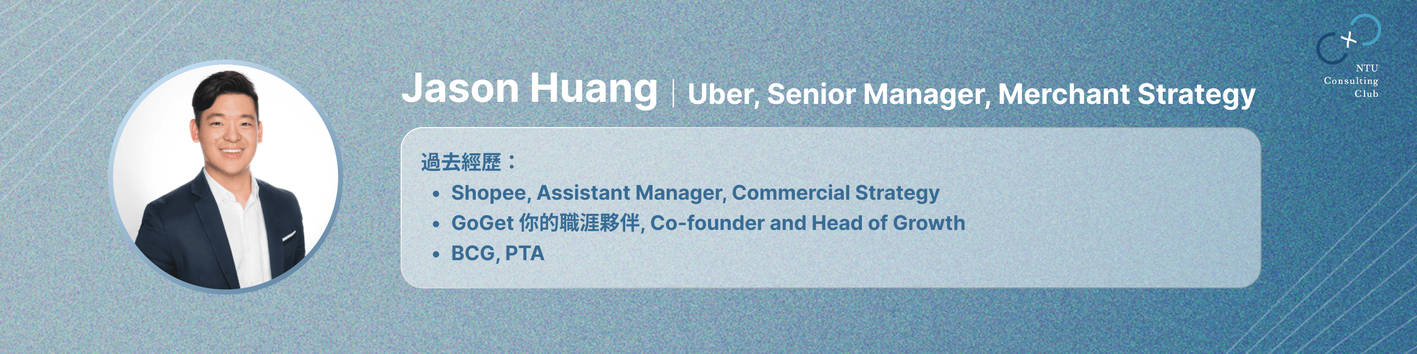 本次臺大管顧社有幸邀請到現任 Uber Merchant Strategy Senior Manager 的 Jason Huang 來為我們進行分享,帶領我們從 Case Interview 的流程出發,深入探討每個環節的思考脈絡與應對方式,也提點了許多應用技巧,引導社員們建立面試所需的思考流程與應對能力!